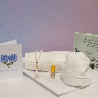 The Ibraheem's Gift pack was designed in close consultation with a hospital Imam and contains the immediate necessities that parents would need to help them prepare for their baby's Muslim burial.